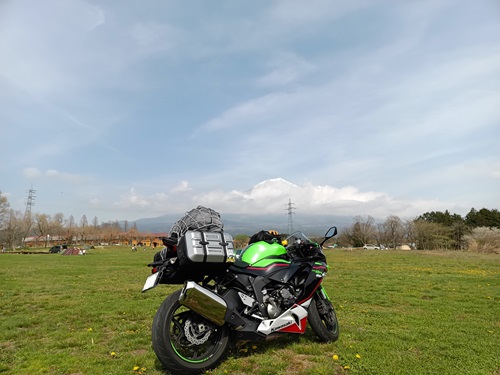 とくにDODのテントの横幅があるので6Rみたいなパッセンジャーシートが狭い+山なりになってるようなバイクは写真のようにサイドバックで補助しないとかなり厳しいかも....